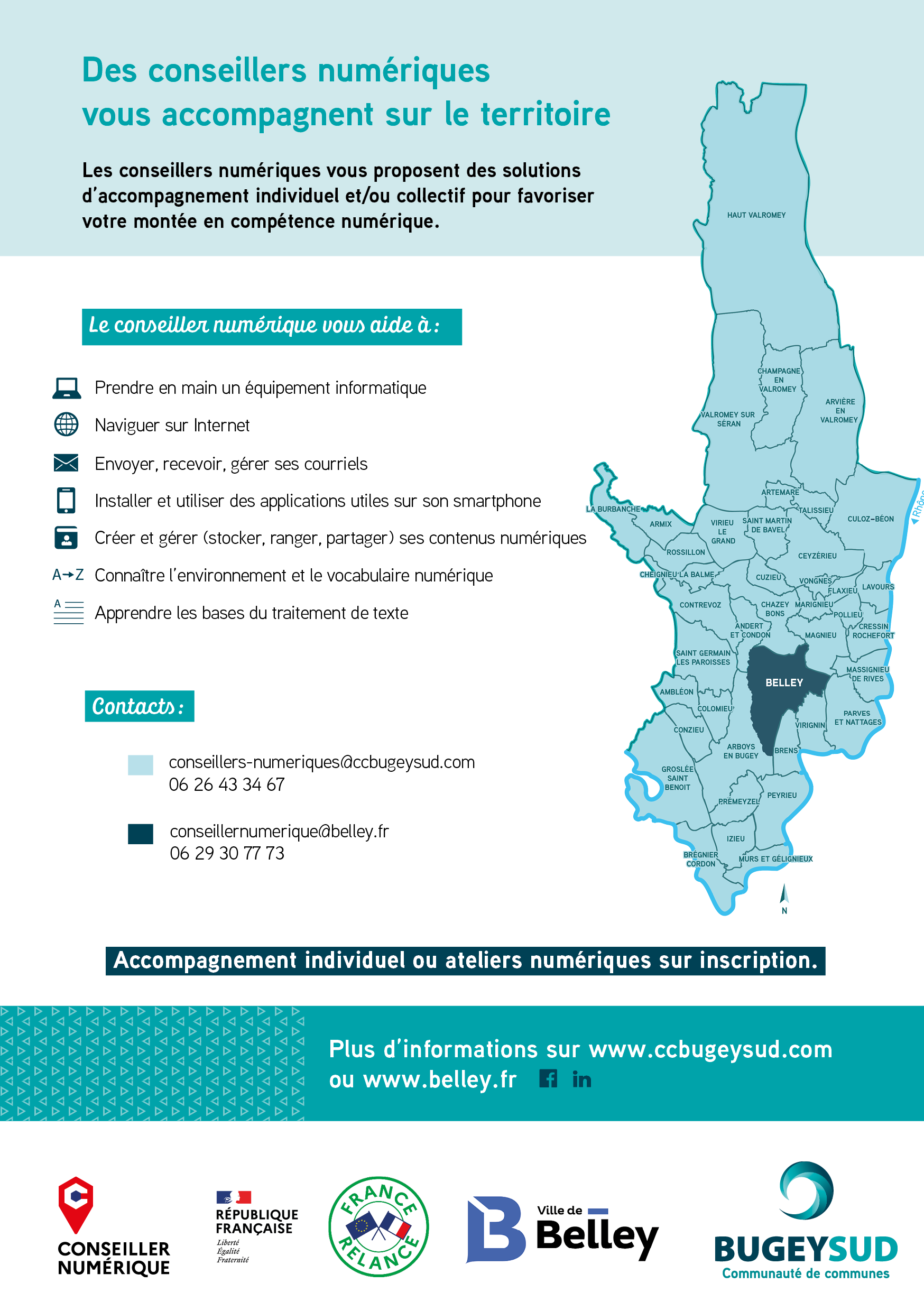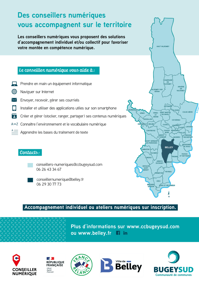 La conseillère numérique est en lien avec toutes les communes du territoire Bugey-Sud et permet à chacun, près de chez soi, de s’approprier progressivement les usages numériques du quotidien.